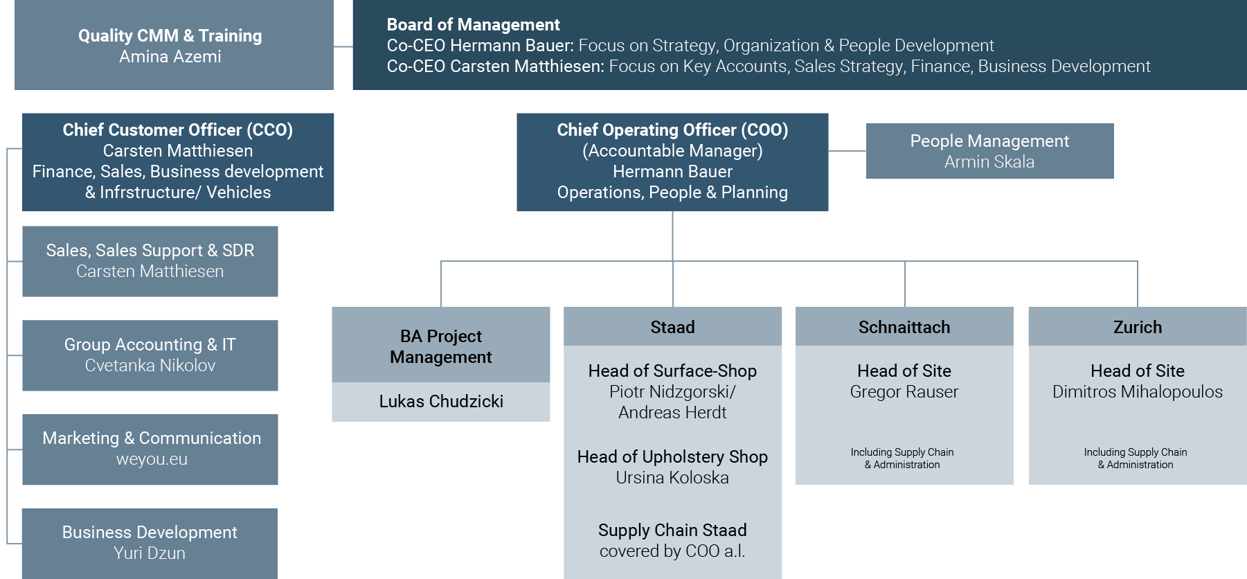 As a highly experienced and dedicated management team at AeroVisto Group, we are deeply committed to offering our customers outstanding products and services. Our extensive expertise, enriched by a diverse range of unique experiences and backgrounds, enables us to develop innovative solutions and continuously expand our market presence. This diversity empowers us to create creative solutions and approach challenges with a spirit of innovation. We are particularly committed to exceeding our customers’ expectations, as we believe this is the key to driving the aviation industry forward.